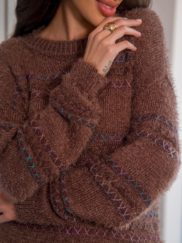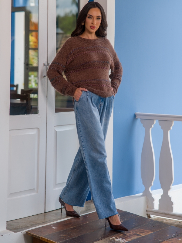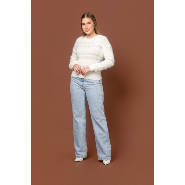 Blusa no fio Angora, macio e confortavel, possui detalhes de alinhavado na peça em degrade de cor. Peça atemporal e versatil;