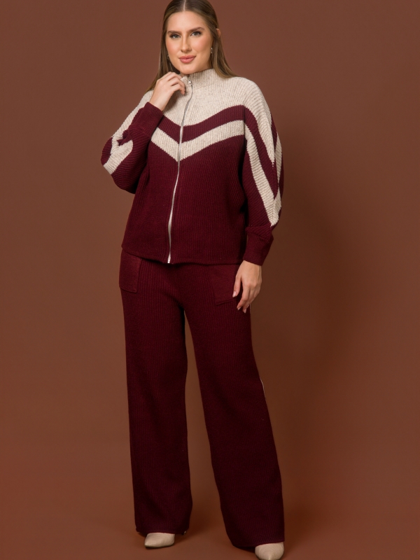 Conjunto perfeito no fio mousse, o Conjunto Naomi traz conforto e estilo, com Jaqueta com manga morcego e ziper, calça com recorte reto.
